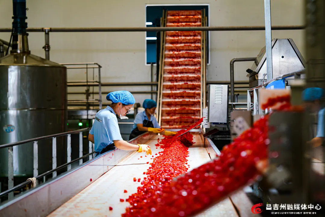 每年8月是番茄生产加工的黄金期,在新疆新茄食品有限责任公司番茄加工园区内,11条生产线全速运转,鲜红番茄经自动化生产线被制成番茄酱、高纯度番茄红素等产品。“我们自主培育的番茄品种抗病性强、产量高,番茄红素含量比普通品种高20%。”该公司常务副总经理刘伟介绍,企业每年将3%的营业收入投入研发,凭借持续的技术创新,已成功开发出有机番茄块、番茄酱、大果粒番茄汁等36个产品,构建起从种子研发到终端提取的全产业链体系,年加工番茄占全疆近三分之一,产品远销欧美,附加值大幅提升。作为当地番茄加工的主力军,企业目前日处理番茄能力达1万吨,年产能稳定在20万吨。