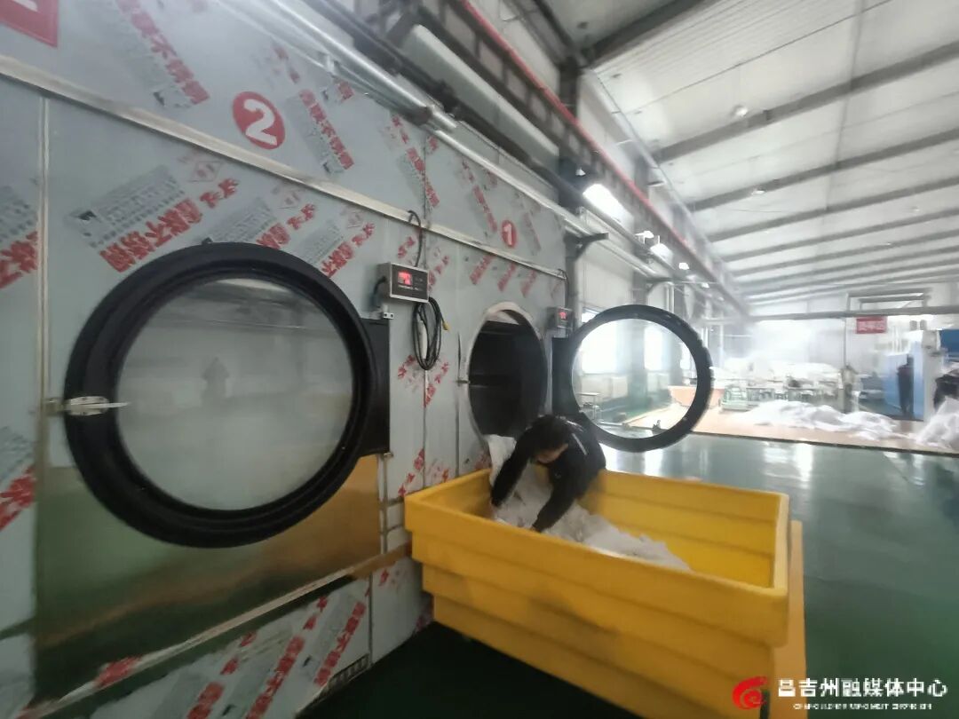 绿色生产是企业的鲜明特色。车间拥有完整的污水循环处理系统,洗涤用水经过净化后能循环使用,烘干产生的冷凝水也被回收利用。“所有洗涤用水均经过软化处理,排污指标达到国家一级A类排放标准。这套系统在提升洗涤品质的同时,大幅降低了污水排放和用水成本,实现了环保与效益的双赢。”易兴武说。