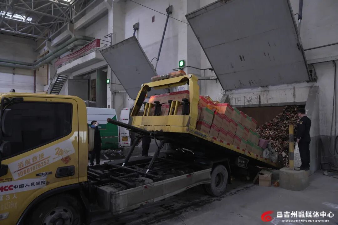 活动现场,4辆满载侵权假冒伪劣商品的车辆有序驶入城发环保能源(昌吉)有限公司卸料大厅。执法人员全程监督、清点核对,将2025年全年依法查扣的侵权假冒伪劣商品卸车,并统一倒入巨型垃圾储坑。随后,工作人员操控垃圾抓斗,精准抓取垃圾储坑内的假冒伪劣商品,缓缓送入焚烧炉。通过高温焚烧发电方式销毁,既杜绝了侵权假冒伪劣商品二次流入市场,又实现了“变废为宝”。