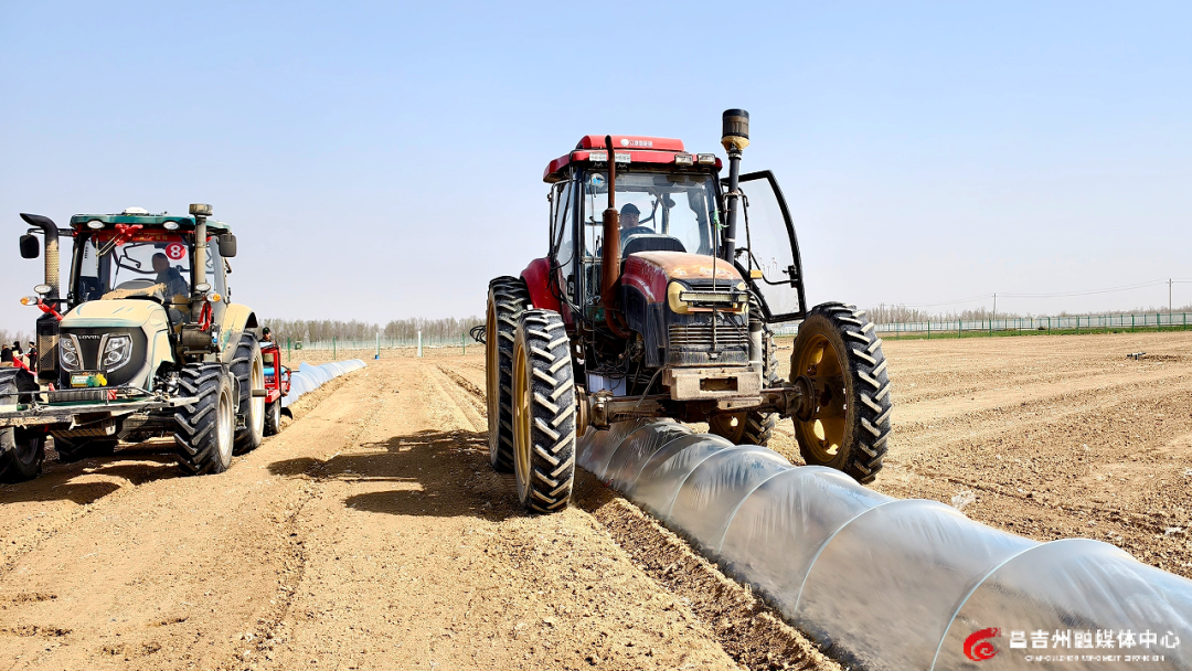 4月10日,一台悬挂式小拱棚自动架设机在田间穿梭,弯架、插架、覆膜、覆土一气呵成,整齐连片的小拱棚为新移栽的西瓜苗撑起生长的温室。这是昌吉州露地西瓜绿色轻简化高效栽培关键技术与机械装备现场观摩会的一幕。