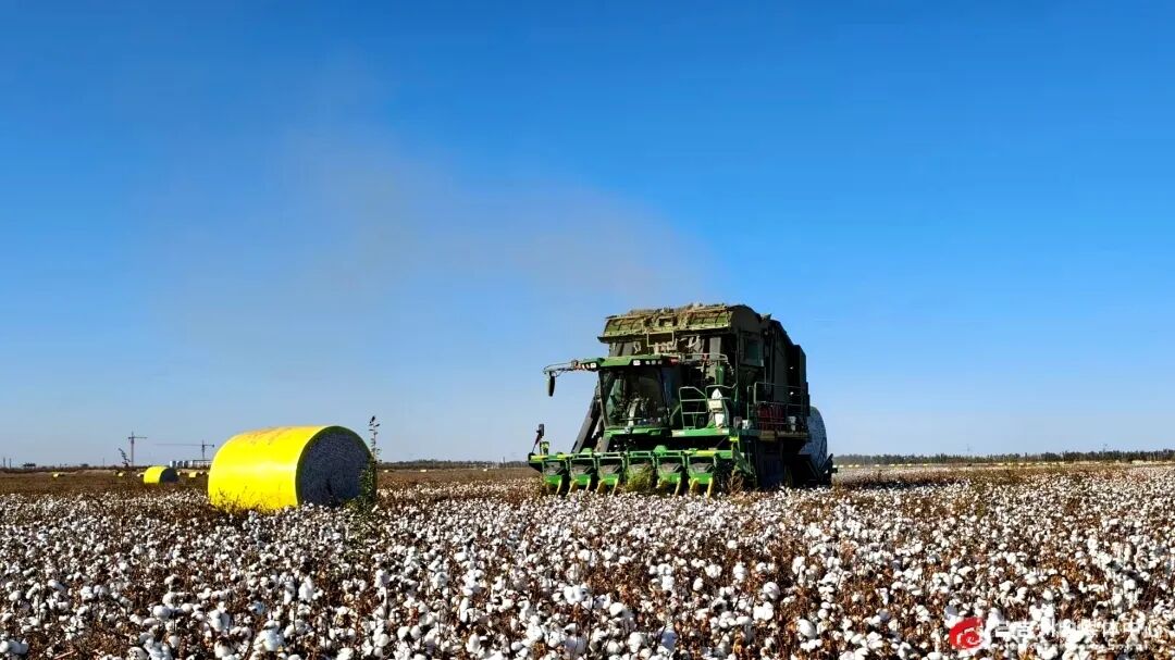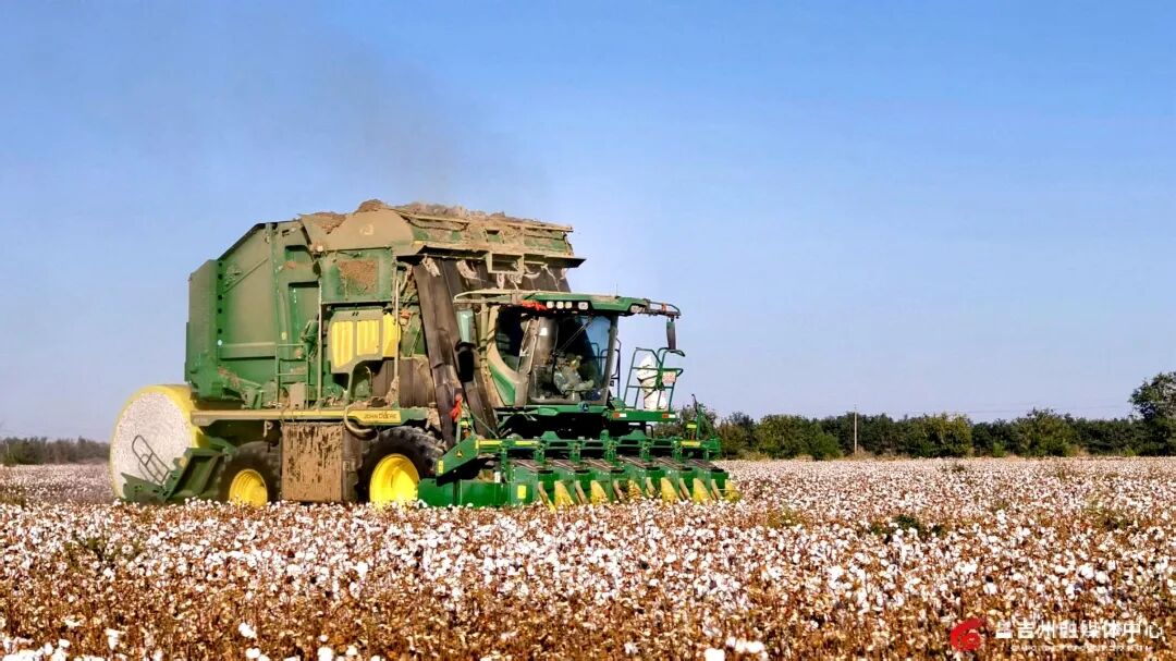 10月10日,昌吉国家农业高新技术产业示范区(以下简称昌吉国家农高区)的一片棉田里,两台自走式打包采棉机在棉田里来回穿梭,雪白的棉絮被快速卷入机身,少顷在机尾“吐”出一个“金蛋蛋”……这是今秋昌吉州棉花丰收的一个场景。