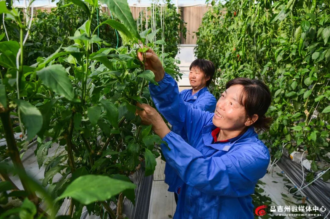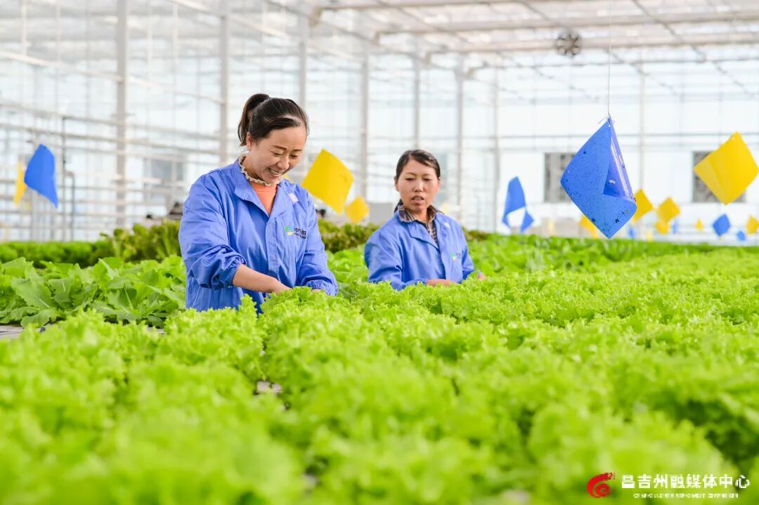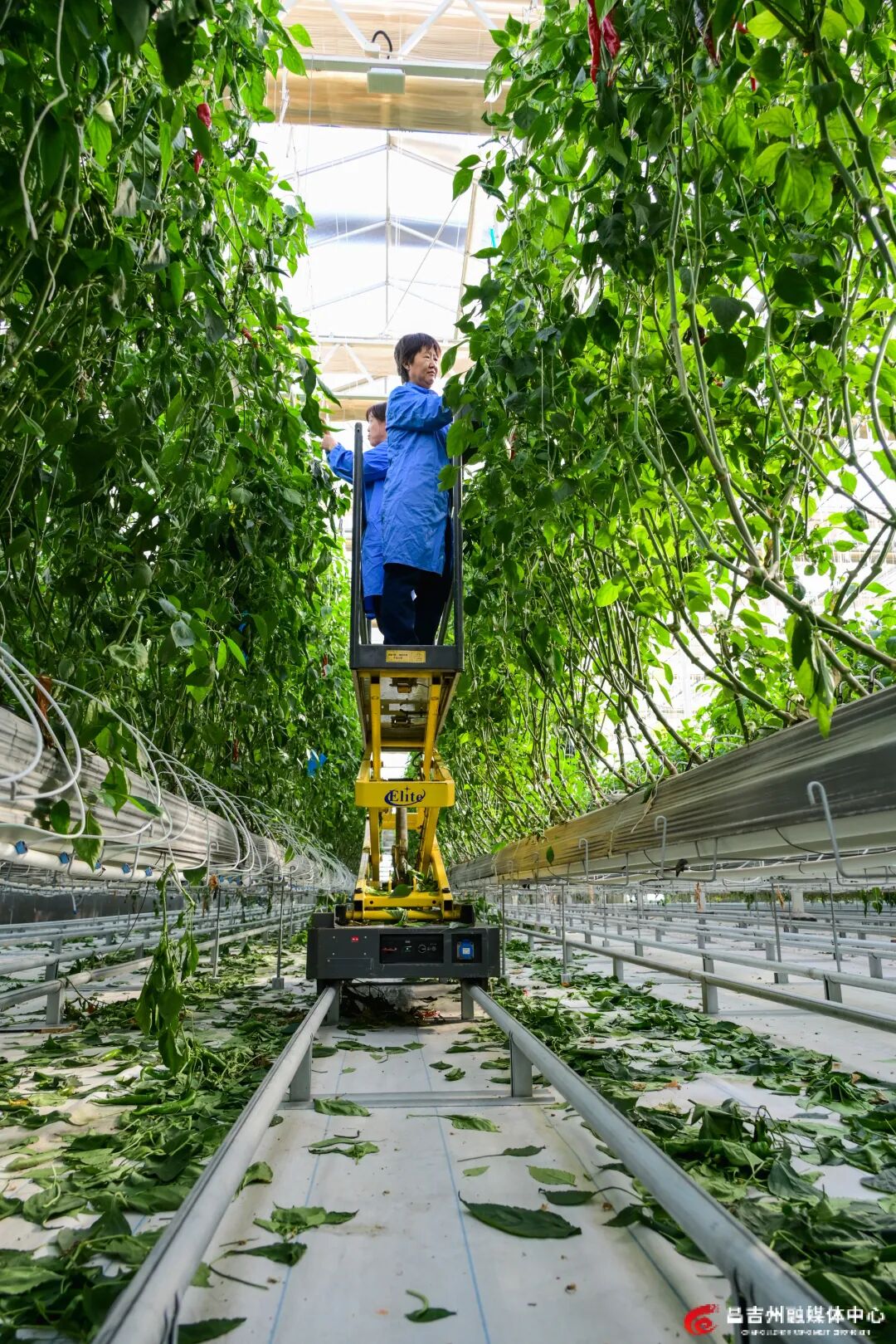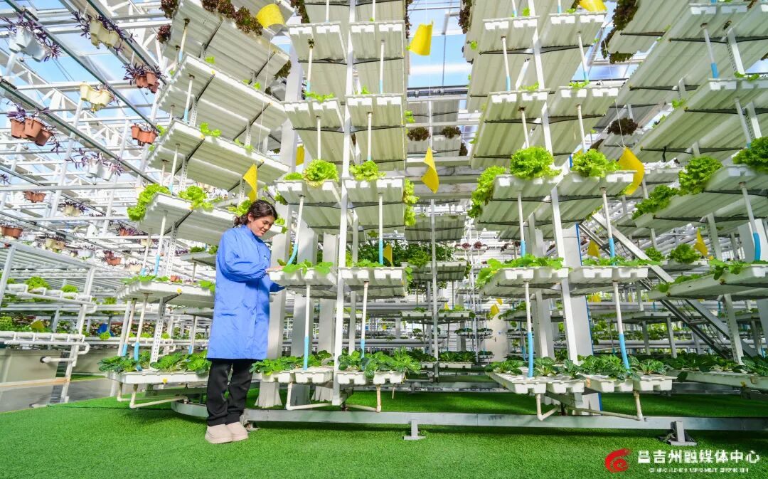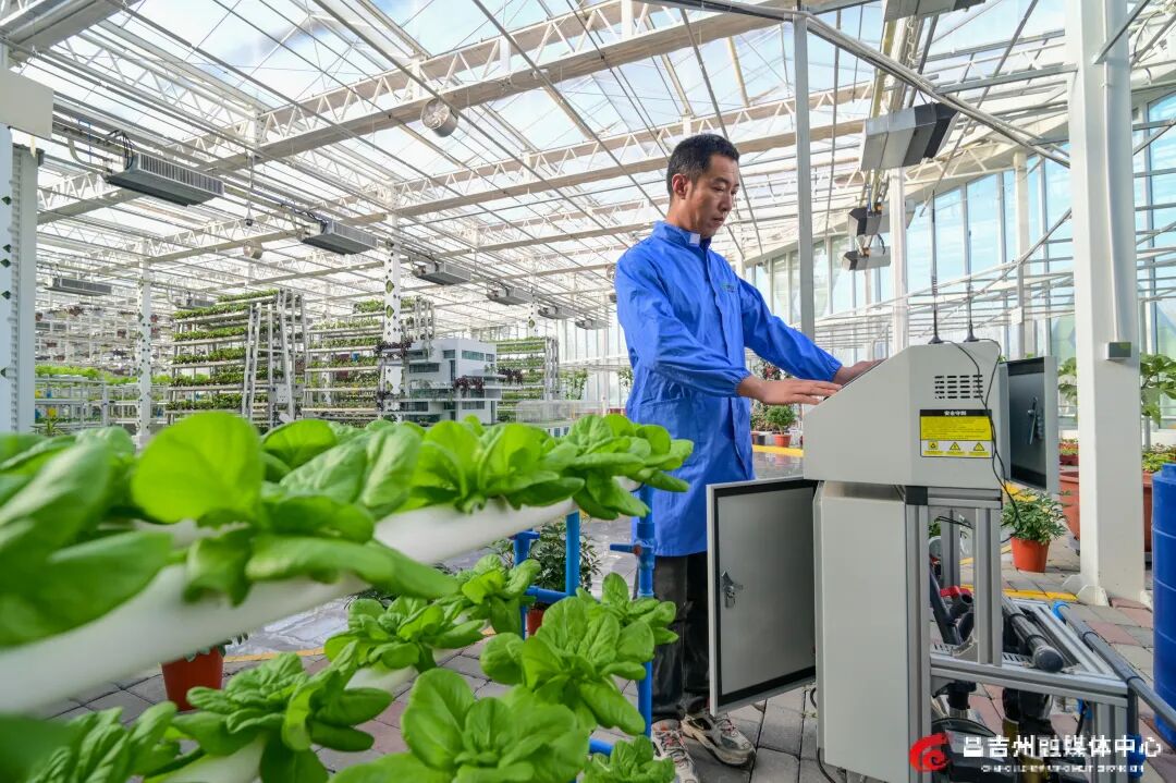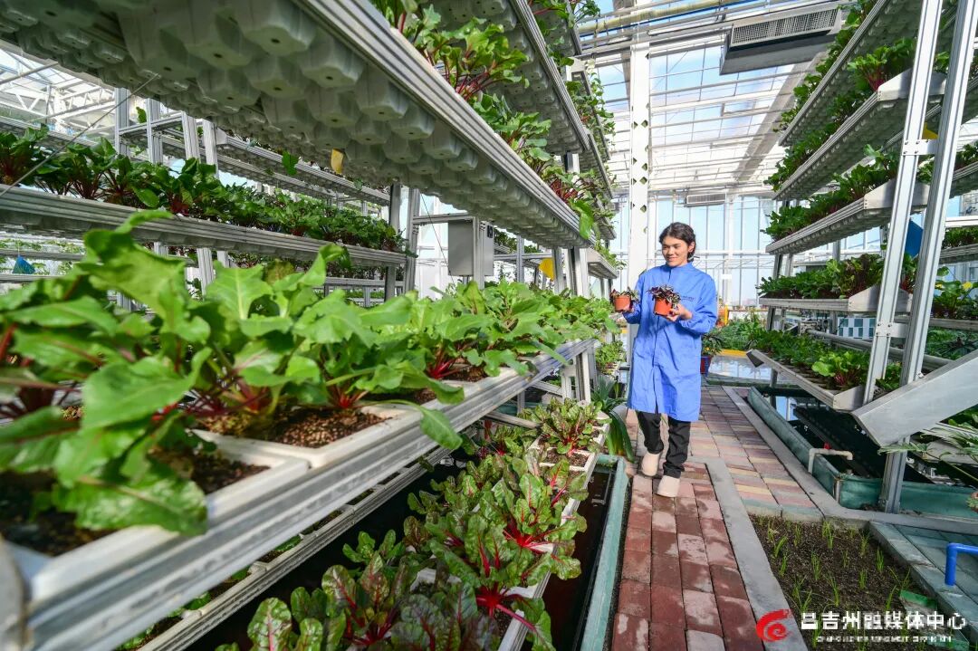 11月19日,在昌吉国家农高区新疆农业博览园智慧农业科技馆内,工作人员正在管护蔬菜。