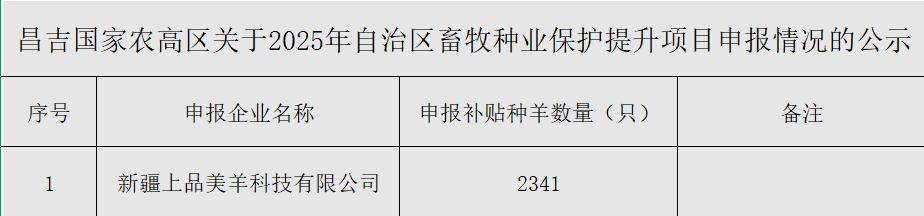 昌吉国家农高区关于2025年自治区畜牧种业保护提升项目申报情况的公示