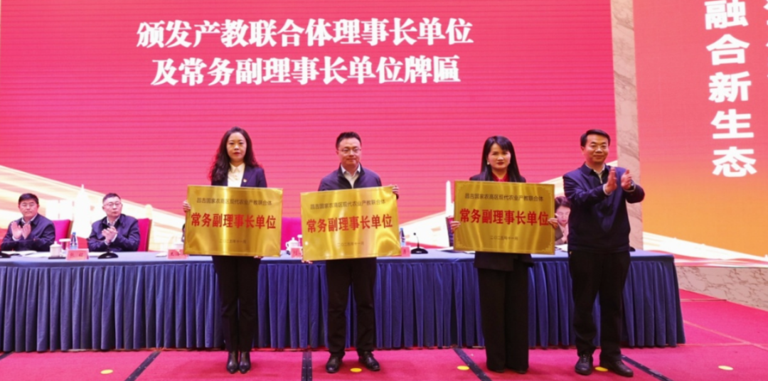 会议通报了昌吉国家农高区现代农业产教联合体2025年重点工作成效及2026年主要任务,宣布了联合体新增的42家成员单位。中国农科院西部中心、新疆农业职业技术大学、新疆泰昆集团有限责任公司、新疆慧尔农业集团股份有限公司、新疆华兴投资集团有限公司5家单位代表作了交流发言和经验介绍。会上还为12家产教联合体理事会成员单位颁发牌匾。